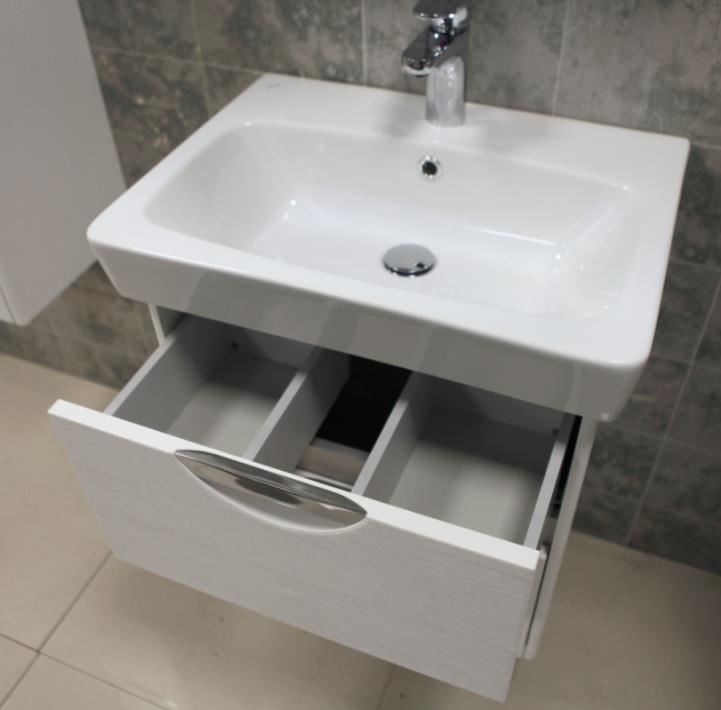 - Тумба (фрезеровка под ручки, 2 ящика плавного движения, возможно нижнее подключение труб, 2 способа монтажа: подвесной и напольный) 445*560*387мм.